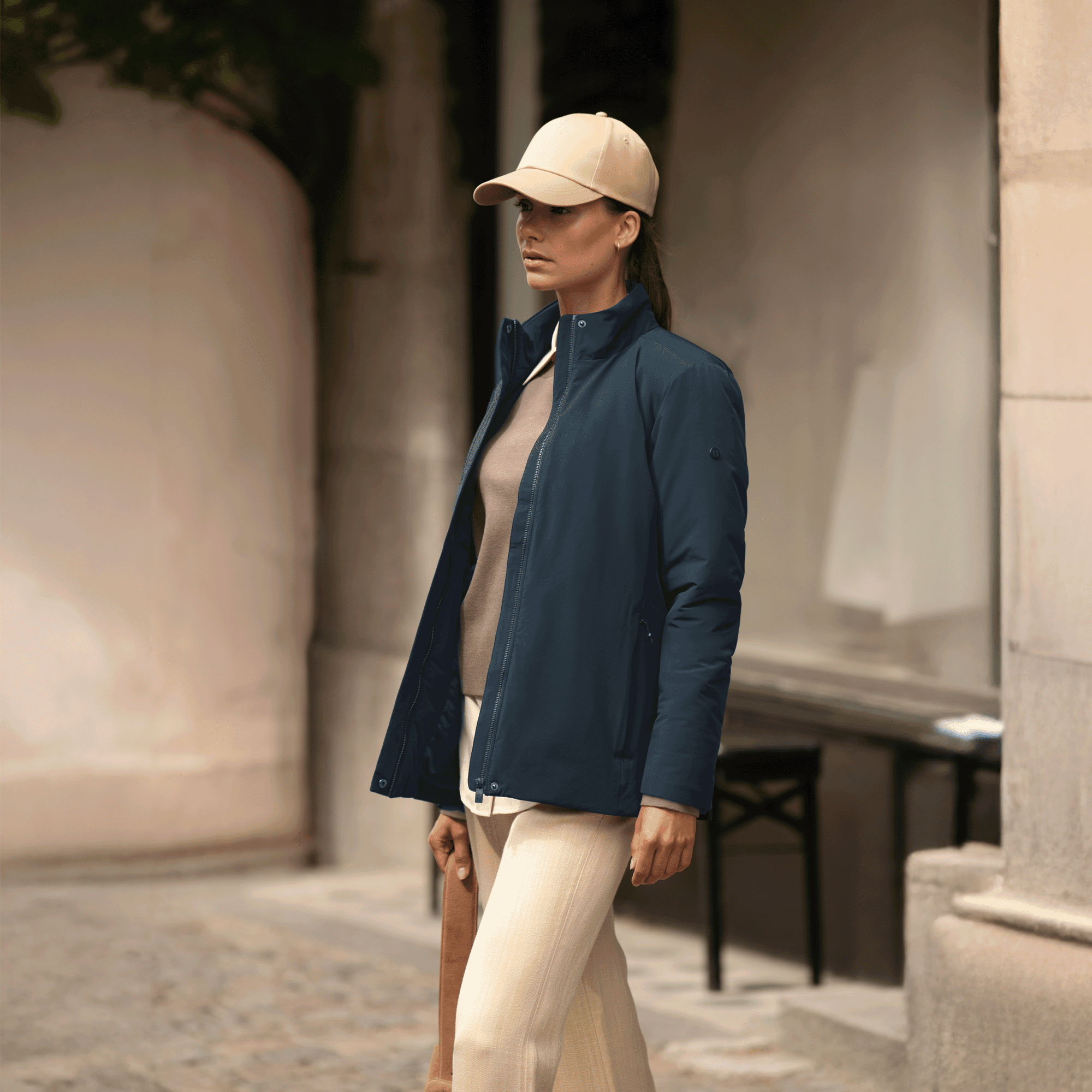 En elegant matt yta och en smal siluett gör den till en jacka som funkar både för stilen och för funktionen. Dam jackan har vi designat utan mudd nertill, och med en vindslå som täcker dragkedjan för en mer feminin känsla.